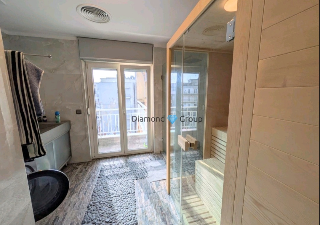 Thessaloniki Center Analipsi - Mpotsari - Nea Paralia for sale , Surface 140.0 sq.m, 7th floor Apartment Luxury Penthouse , built in 1974 , renovated,consists of 1 living room, 2 bedrooms, 1 kitchen, 1 WC, 2 toilets, ( ,,,Equipped with All Electrical Devices ). The heating system is autonomous - Electrical , A/C, solar boiler.It also has , secure door, alarm system,balconies, elevator, Awning, pets allowed,furnished. Located near to The address shown is approximate,City center,Main street,Sights ,Beach,Urban attitude. ,sea at 50 m Price (540.000€) Property Code 31046 DIAMOND GROUP Κομνηνών 17 Θεσ/νίκη,